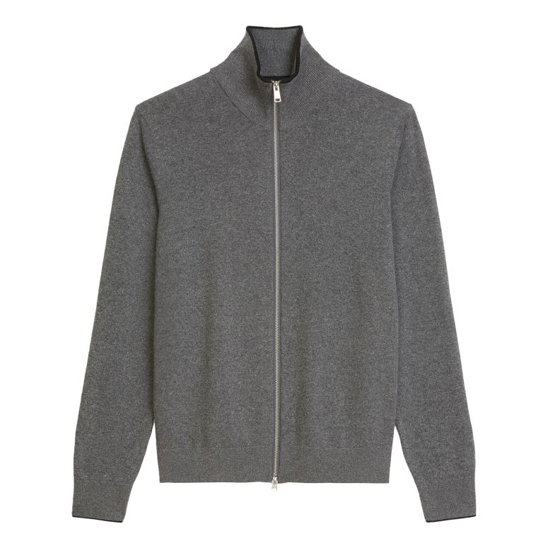Vielseitig kombinierbar: Der sportive Cardigan überzeugt mit einem praktischen Zwei-Wege-Zipper und ist aus einem weichen Bio-Baumwoll-Mix mit hohem Schurwollanteil gefertigt. Der hohe Stehkragen kann wahlweise aufgestellt oder umgeklappt getragen werden. Rippbündchen an Ärmeln und Saum sorgen für eine gute Passform. Französische Schultern mit Fully-Fashioned-Details und eine Logo-Stickerei auf der Brust runden das Design ab.