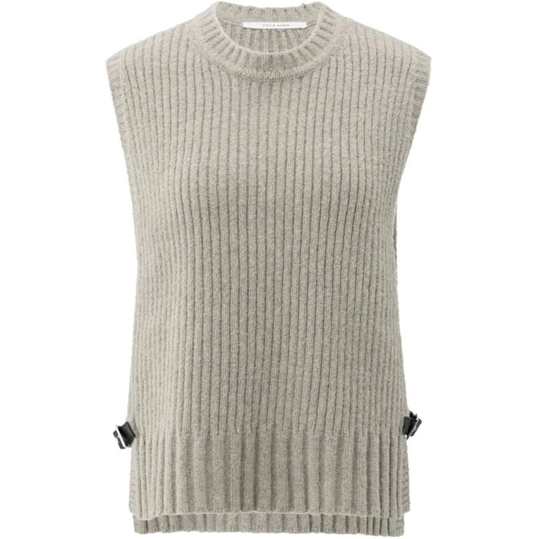 Dieser gerippte ärmellose Pullover aus dickem Strick